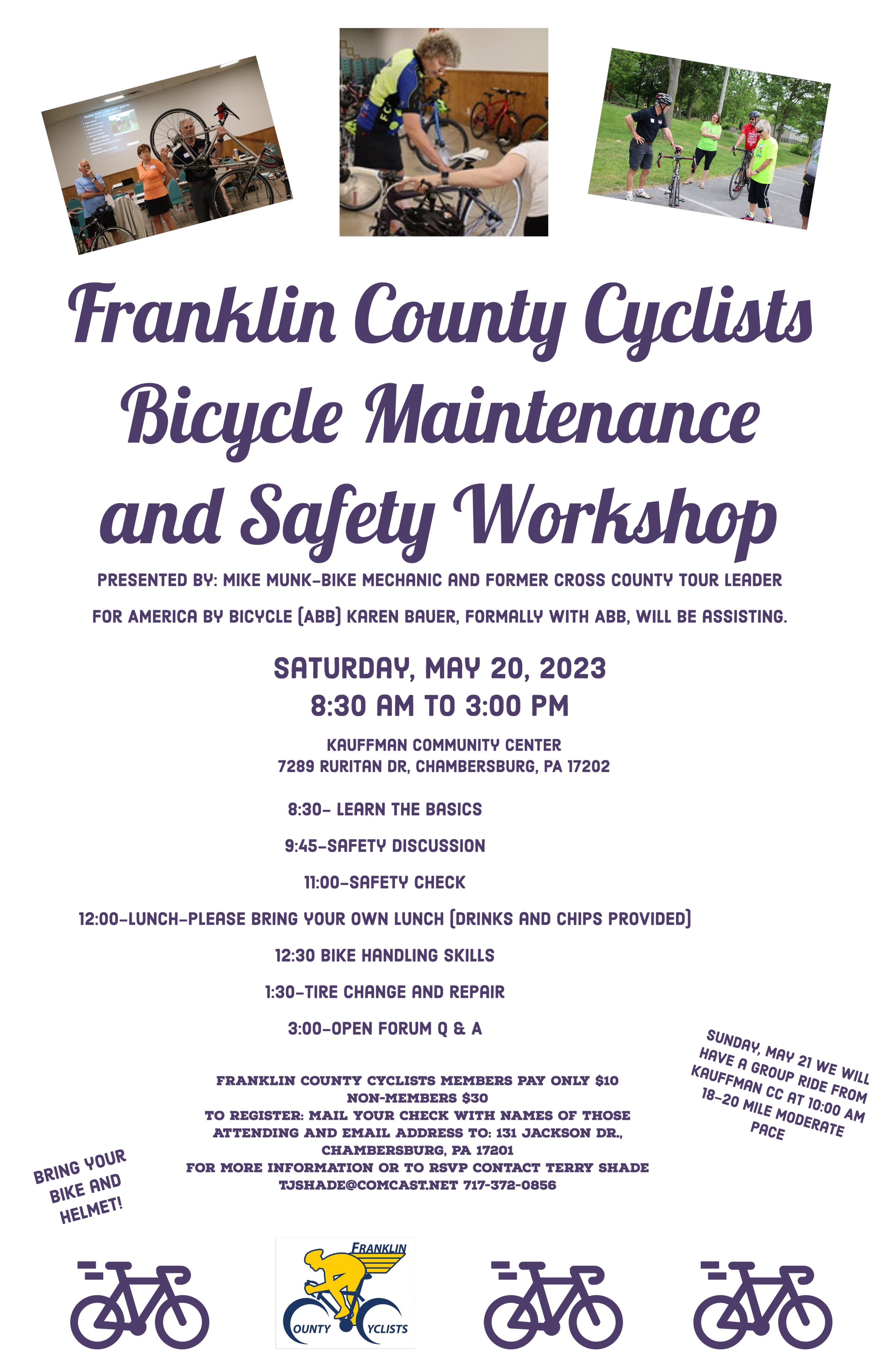 Mike Munk and Karen Bauer will be informative and enjoyable. Attend the workshop to become a better rider and a better bike mechanic.